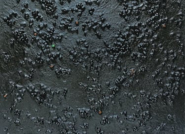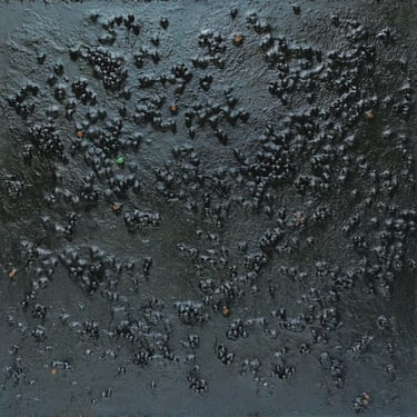 Forme organiche a volte spugnose a volte simili a concrezioni minerali; un sedimento di sporco su un tagliere o una catena montuosa. Un mondo microscopico che diventa enorme e sovrasta le superfici che ci circondano.