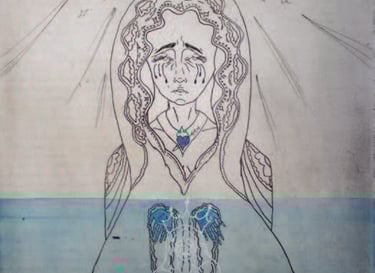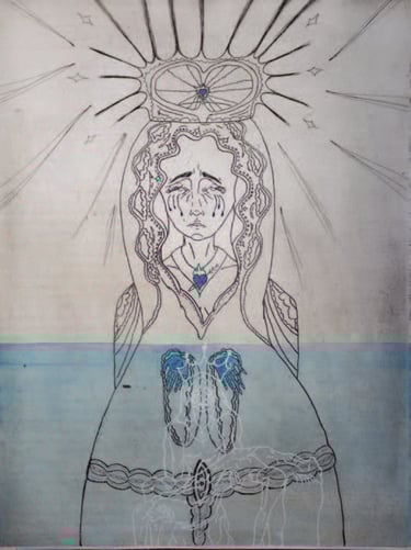 È l'insieme di due opere originariamente separate e distinte con riferimenti stilistici alla Madonna barocca rivisitata in chiave moderna dove la figura principale regge il corpo apparentemente senza vita di un'altra figura femminile.
