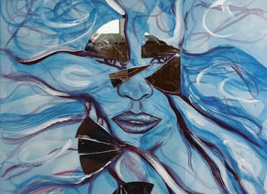 Broken pieces e un'opero che rappresenta il volto di uno donno nello quale ho inserito dei pezzi di specchi rotti, l'opero ha un significato profondo, perché non solo vuole con gli occhi dipinti creare un contatto con l'osservatore, in modo che si interroghi su quelli che sono i suoi pezzi rotti, causati da un momento buio, ma con gli specchi, ci fa riflettere la speranza che ognuno di noi ha dentro di sé e che in quel determinato momento non riesce ancora a vedere, a causa del buio, ma che ha, se riesce a specchiarsi bene, superando qualsiasi difficoltà.