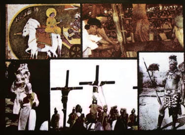 L'opera si configura come un'indagine sulla sofferenza umana analizzata nel campo del sacrificio improntato all'espiazione. Le immagini, tutte derivate dal formulario visivo legato al rito e al culto religioso, canalizzano il trionfo dell'uomo sul mondo circostante e la sublimazione del senso di colpa risultante attraverso il sacrificio.
