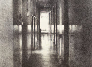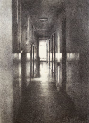 All'improvviso, mentre percorrevo il corridoio, la luce della finestra sul fondo interagì con i riflessi sulle pareti generando una croce, quasi un'apparizione