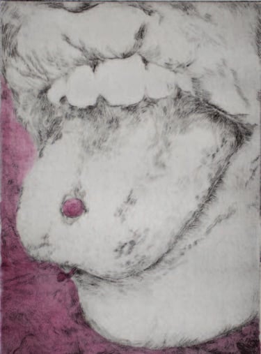 Una lingua affamata vola in uno spazio indefinito alla ricerca di una preda. Una figura pop decontestualizzata dal corpo, un simbolo di sensualità vorace posta su un fondo che l'attraversa.