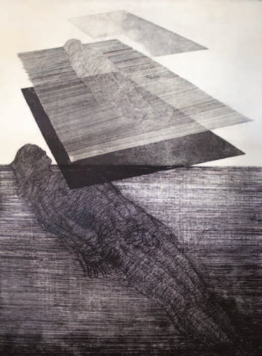 Acquaforte su zinco con intervento ad acquerello stampata su