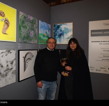 Uno dei momenti più significativi dell’evento è stata la premiazione del Premio Seminare Speranza, che ha visto la partecipazione di numerosi studenti delle Accademie di Firenze e Bologna. Tra i cinque finalisti selezionati, il premio è stato assegnato a Asia Galeati, dell’Accademia di Belle Arti di Bologna, per la sua opera “Sotto la nebbia, cresce” (tecnica mista su tela). La sua creazione rappresenta, attraverso raffinati dettagli, i fiori appassiti e i giochi di luce che emergono dalle fessure di un terreno fangoso, metafora della resilienza e della speranza che nascono dopo una calamità.