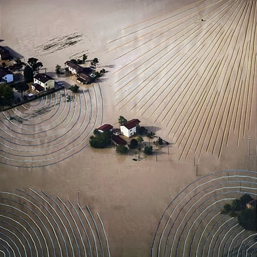 Un’opera che racconta le scene di un’alluvione, catturando con delicatezza la resilienza umana e la speranza nella ricostruzione.