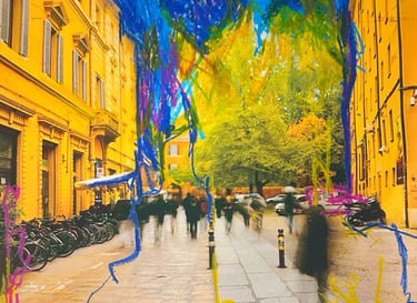 Dopo i recenti avvenimenti che hanno messo in ginocchio la regione dell'Emilia Romagna, se si parla di speranza nei luoghi di questa regione si spera nel fatto che tragedie come le recenti alluvioni non accadano più così spesso e che inizi ad esserci un aiuto repentino per limitare i danni e mettere subito in salvo persone e abitazioni. Con questo lavoro si cerca quindi di essere attuale e portare in evidenza fatti come questi che non devono essere dimenticati partendo dall'utilizzo di una foto di Bologna che ritrae chiaramente la situazione in tutta la sua verità e tragicità. Aggiungendo l'intervento del cucito si cerca di vendicare i luoghi coinvolti ridandogli la loro forza e luce sottolineando che sotto tutta quell'acqua c'è sempre la speranza di rinascere e riavere i propri colori.