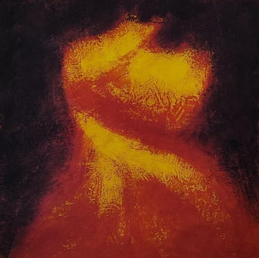 Il dipinto rappresenta la speranza come un energia dinamica, un intreccio di linee e colori che evocano emozioni di crescita e trasformazione.