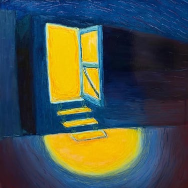 Ho scelto di dipingere un treno illuminato perché rappresenta un simbolo di movimento, di transizione e di nuove opportunità. Quando penso alla speranza, mi viene in mente l'idea di un viaggio, un cammino verso qualcosa di migliore, anche nei momenti più bui. La luce emanata dal treno, in un contesto di buio e di incertezze, diventa metafora di un faro che guida, che illumina la strada e offre la possibilità di un futuro luminoso. Il treno, mezzo di trasporto da me preso fin dall'età di diciannove anni, rappresenta l'emblema della speranza di poter costruire il mio futuro al meglio nonostante gli ottocento km di distanza da casa. Ma è fondamentale ricordarlo soprattutto come un simbolo di connessione: unisce persone, luoghi e storie diverse, creando legami. In questo modo, il treno illuminato diventa un messaggio di speranza collettiva.